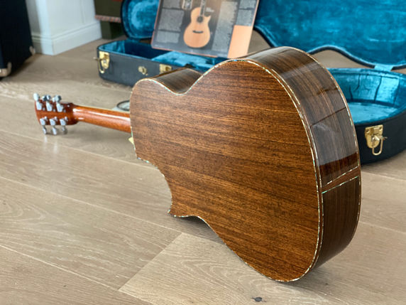 Die Gitarre wurde über die letzten 30 Jahre gepflegt behandelt. Da sie aber bestens klingt, wurde sie auch durch regelmäßiges Spielen gut eingespielt. Über die Jahre haben sich 2-3 kleine Druckstellen eingeschlichen und auch ein ganz feiner Riss auf der Decke im Klarlack gebildet, siehe Fotos. Die Decke befindet sich dennoch in einem technisch hervorragendem Zustand und ist nicht gerissen! Im Grunde eine Form von natürlichem Aging.