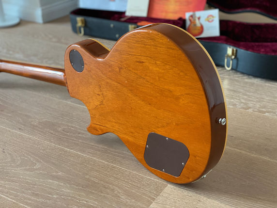 An der schönen Holzstruktur der Rückseite kann man sich auch stundenlang erfreuen. Dem ganzen Charme dieser Goldtop, wird durch ein paar echte optische Alterungsspuren die Krone aufgesetzt, siehe Fotos.