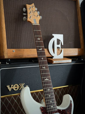 Optisch haben wir hier ein sehr charmantes Frost White und als absolute Ausnahme sogar mit Tortoise Pickguard! Zudem überzeugt die Frost Variante durch den nicht so dick Hochglanz-lackierten Halsrücken auch in Punkto Feeling. Sie spielt sich hervorragend und reagiert auf alle Nuancen des Spielers mit erstaunlicher Dynamik! Da ist PRS ein großer Wurf gelungen.