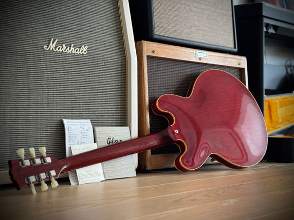 Wahnsinn, hier haben wir endlich wieder eine herausragende ES-335! Wir verkauf im Kundenauftrag diese 2022 Gibson ES-335 1961 Murphy Lab in Ultra Light Aged 60s Cherry. Ein selektiertes Leichtgewicht (3,37kg), gekauft für 6.199,-€ beim Musikhaus Hermann, dem Premium Gibson Dealer, siehe Rechnung.