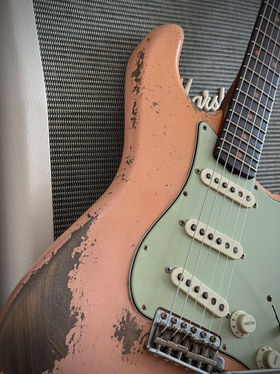 Wir präsentieren die 2023 Fender Masterbuilt Dale Wilson 19562 Heavy Relic Strat in außergewöhnlichem Heavy Aged Shell Pink Finish! Die Relic Finishes von Dale Wilson sind einfach einzigartig und in diesem Fall noch mit einer einzigartigen Farbgebung untermauert, der absolute Wahnsinn und kaum in Fotos einzufangen. Aber auch die "inneren Werte" sind hier nicht weniger Spektakulär. Die wichtigsten Features im Überblick: