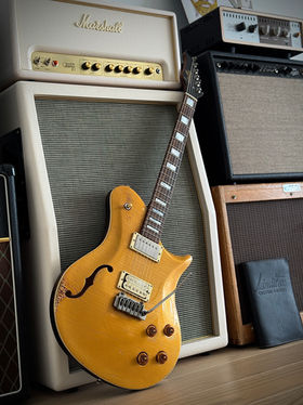 Der Hals PAF samt Kappe klingt stets holzig und cremig zugleich, passt hervorragend zum druckvollen, offenen Charakter des Creme Bridge Pickups. Beide Pickups haben einen eigenen Volumenregler und Tone Potis. Alle Potis arbeiten feinfühlig und lassen sich entsprechend detailliert dosieren. Da die Gitarre jedoch ebenfalls so feinfühlig auf die Anschlagshand reagiert, kann man alleine darüber schon viele Ausdrucksmöglichkeiten erfahren, die bei anderen Instrumente gerne im "Einheitsbrei" untergehen. Alles in allem eine fantastische Gitarre mit viel Sustain, Dynamik und dem gesuchten, holzigen Ton, den man sich bei guten Bursts wünscht. Um diesen Ton zu erzielen, hat Carsten gezielte Hohlkammern untergebracht, welche das blitzschnelle Ansprechverhalten verstärken. Gepaart mit dem Lightweight Hölzern kommen wir auf angenehme 3,32kg Gesamtgewicht inkl. Tremolo!