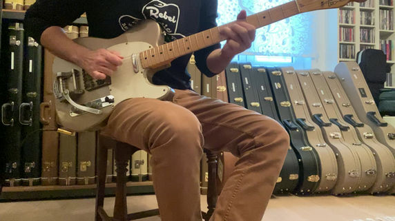Diese spannende `59 Bigsby Telecaster in Cadillac Gold hat unsere Erwartungen völlig übertroffen.